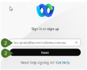 - Enter your Webex User ID (which is typically your phone extension @email domain eg 0101@company.com) and click on Next.