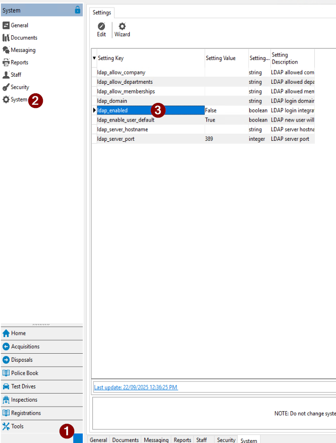 To enable LDAP integration, navigate to system settings and search for "ldap"
