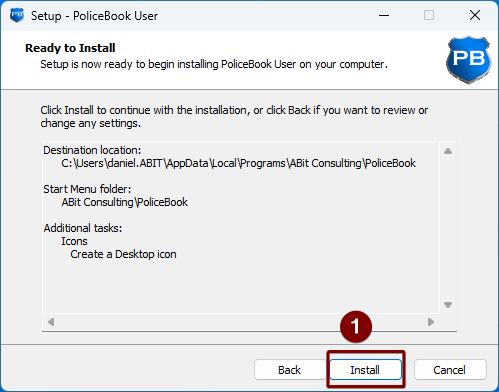 The User setup does not require Administrative rights to install, but means only the user that installed the program can use it. There is a System setup available, but requires Administrative rights to install. You will be able to find these options on your PoliceBook software home page. The User setup is the recommended version.