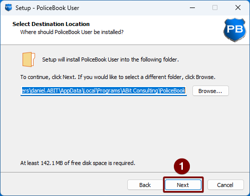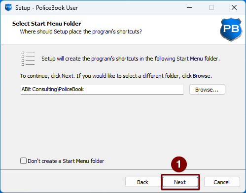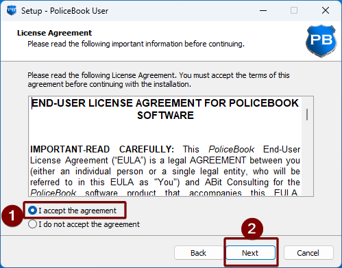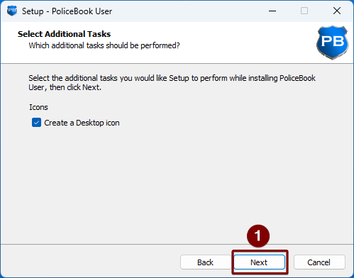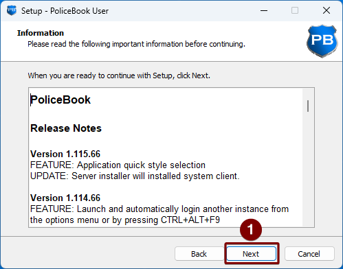 1. Click "Next" if you want to continue with the set-up, else click "Cancel", and the PoliceBook installer will close.
