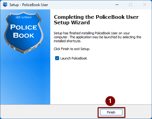 8. Once the installation is finished, you are now ready to open PoliceBook. Click Finish.