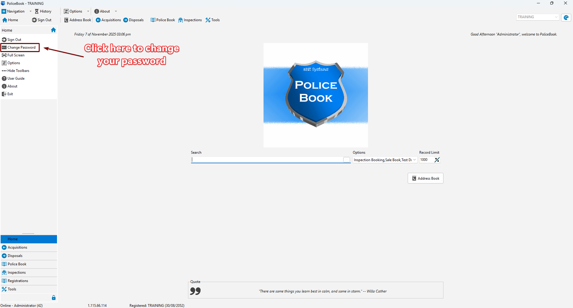 To change your password while you are logged into the application, please go to the left sidebar and click "Change Password"