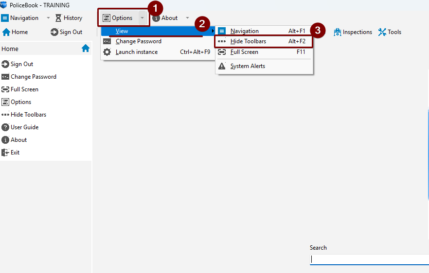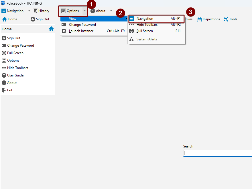 You can show and hide the navigation menu with the keyboard shortcut above or by going to "Options" > "View" > "Hide Toolbars"