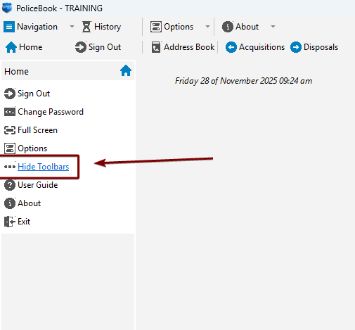 You can also hide the toolbar menu with the button in the navigation menu (left-side).