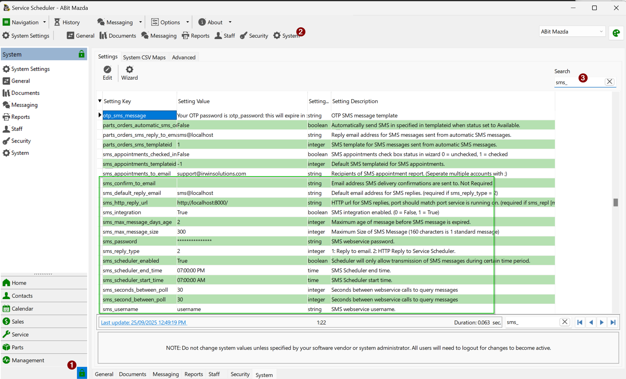 SMS webservice WSDL. Leave as default primary.smartmessagingservices.net/gateway/services/SMSService?wsdl |