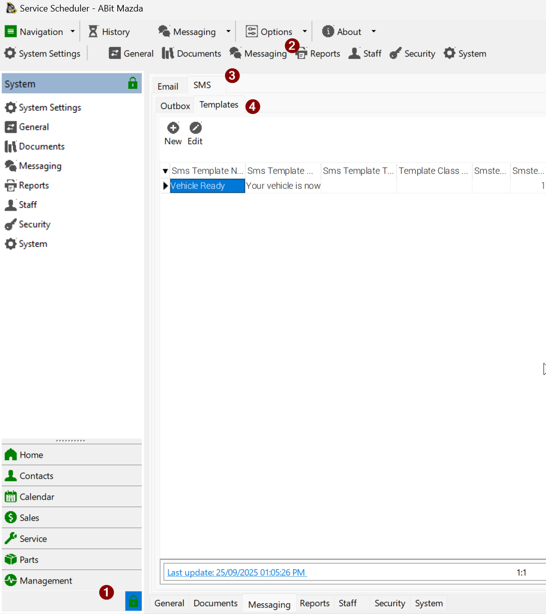 SMS templates are available under System -> Messaging -> SMS -> Templates