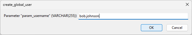 CALL `create_global_user`('Bob Johnson', 'bob.johnson@company.com', 'bob.johnson', 'unhackable', '0');